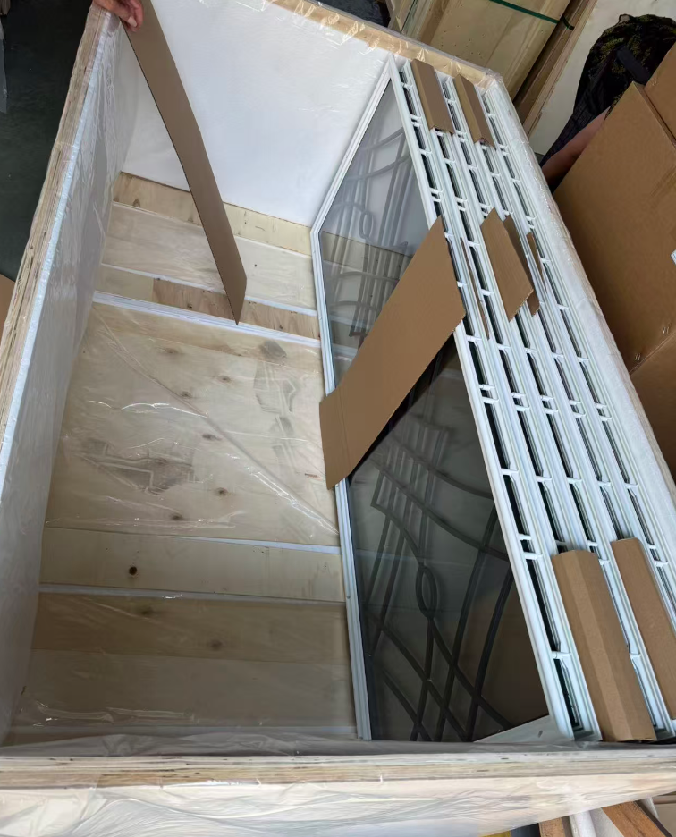 Nasze szkło do drzwi wejściowych jest starannie pakowane, aby zapewnić bezpieczną dostawę do naszych klientów. Proces pakowania obejmuje następujące kroki: